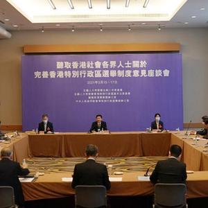 2月28日至3月1日,中央有关部门在深圳市召开座谈会,广泛、充分听取香港社会各界代表人士对完善“爱国者治港”有关制度的意见。全国两会期间,相关部门又以多种方式,逐一听取了港区全国人大代表、政协委员的意见。