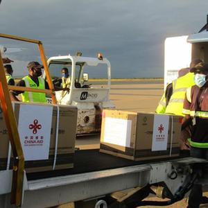 中国政府援助纳米比亚的新冠疫苗16日下午经津巴布韦哈拉雷运抵纳米比亚温得和克国际机场。纳副总理兼外长恩代特瓦、卫生部长尚古拉和中国驻纳米比亚大使张益明共同在机场迎接并出席交接仪式。