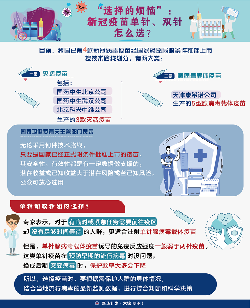 新华社北京3月18日电(记者王琳琳、彭韵佳)当前,海外疫情依然严峻,国内疫情得到有效控制。在接种新冠病毒疫苗的选择上,不少民众遇到了“选择的烦恼”:要不要打疫苗?打哪个品种的疫苗更好?单针和双针如何选择?对此,新华社记者采访了有关主管部门和业内权威专家。