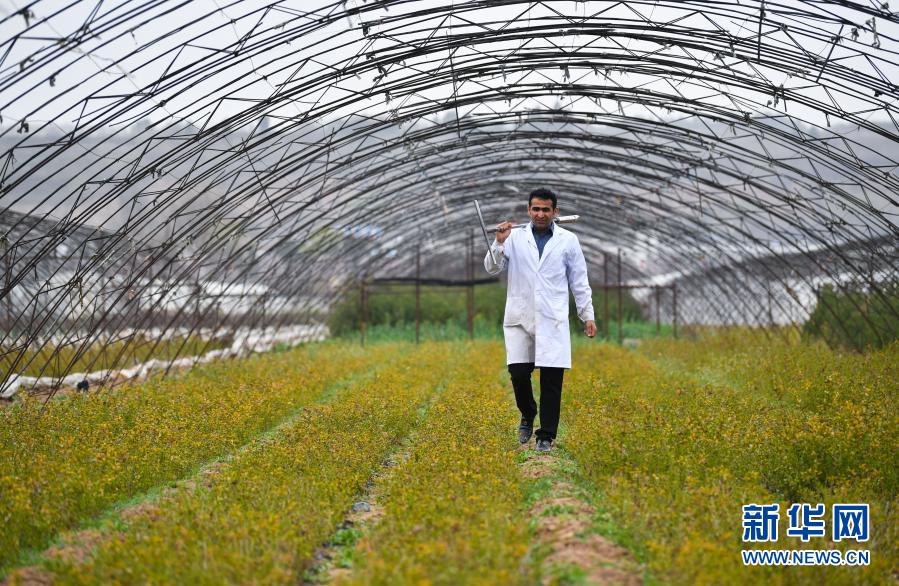 3月17日,在陕西杨凌农业高新技术产业示范区,金乐天在田间行走。