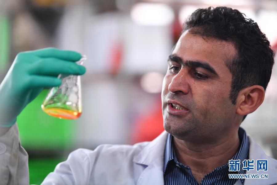 3月17日,金乐天在位于陕西杨凌的西北农林科技大学实验室进行实验。