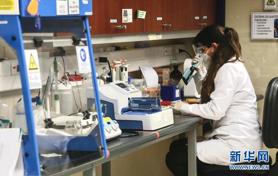 3月17日,智利天主教大学参与科兴疫苗Ⅲ期临床试验的工作人员在位于圣地亚哥的实验室工作。新华社发(智利卫生部供图)