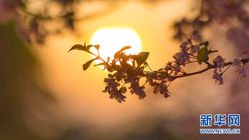 夕阳下云南大学呈贡校区的海棠。新华网发(李哲 王崴摄)