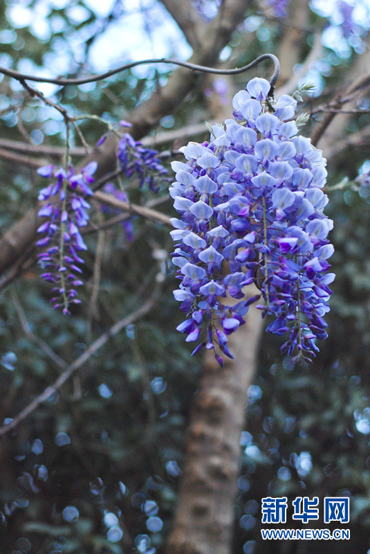 云南师范大学呈贡校区内,一串串紫藤萝挂在枝头,点缀校园春色。新华网发(宋佳琦 摄)