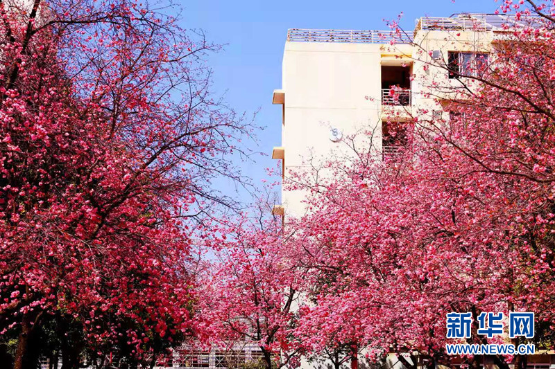 云南师范大学呈贡校区樱花挂满树梢。新华网发(彭蓉摄)