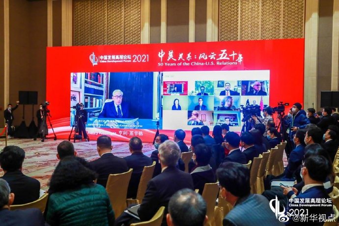 今年恰逢美国前国务卿基辛格首次访华50周年。20日举行的中国发展高层论坛2021经济峰会上,基辛格以线上方式出席峰会。他说,50年前,他第一次来到中国,那时的中国无法与今天的中国相比拟,如今中国发展的巨大变化令人难以置信。针对当前中美关系,基辛格表示,中美是两个伟大的国家,有着不同的文化和历史,对一些事情的看法难免会有不同,但现代科技、全球化传播和经济全球化都要求双方付出比以往更大的努力推进合作。世界的和平与繁荣取决于中美之间的理解。积极的合作关系是很重要的。(记者韩洁、王宾 摄影李鑫)