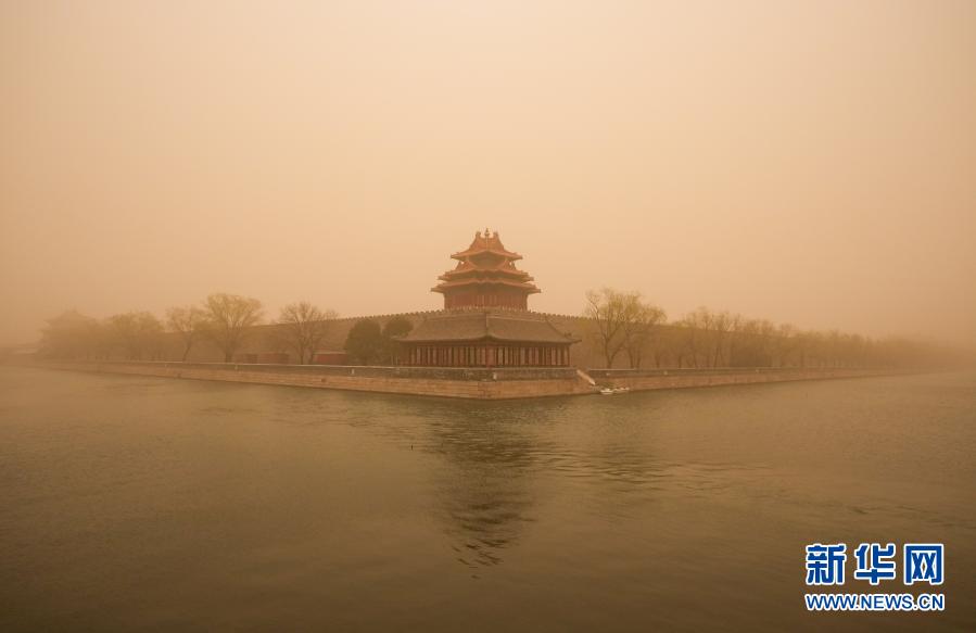 这是3月15日拍摄的故宫角楼。3月15日,北京市遭遇沙尘天气。新华社记者 陈晔华 摄