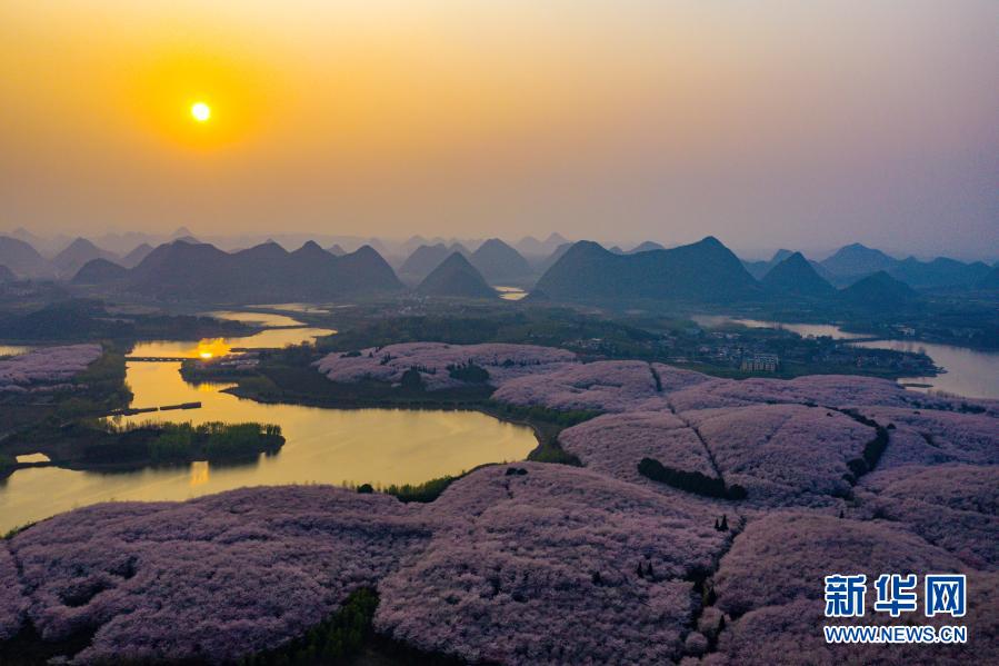 近日,贵州省贵安新区红枫湖畔的樱花观光园内万亩樱花竞相盛开,吸引不少游客前来观赏。