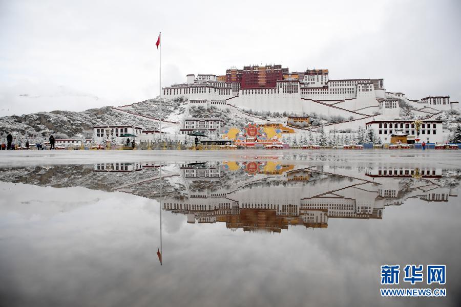 3月14日拍摄的雪中布达拉宫。3月14日,西藏自治区拉萨市迎来一场降雪。