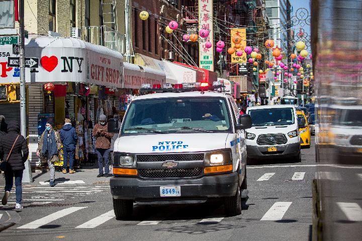 3月19日,警车在美国纽约唐人街巡逻。(新华社发,郭克摄)