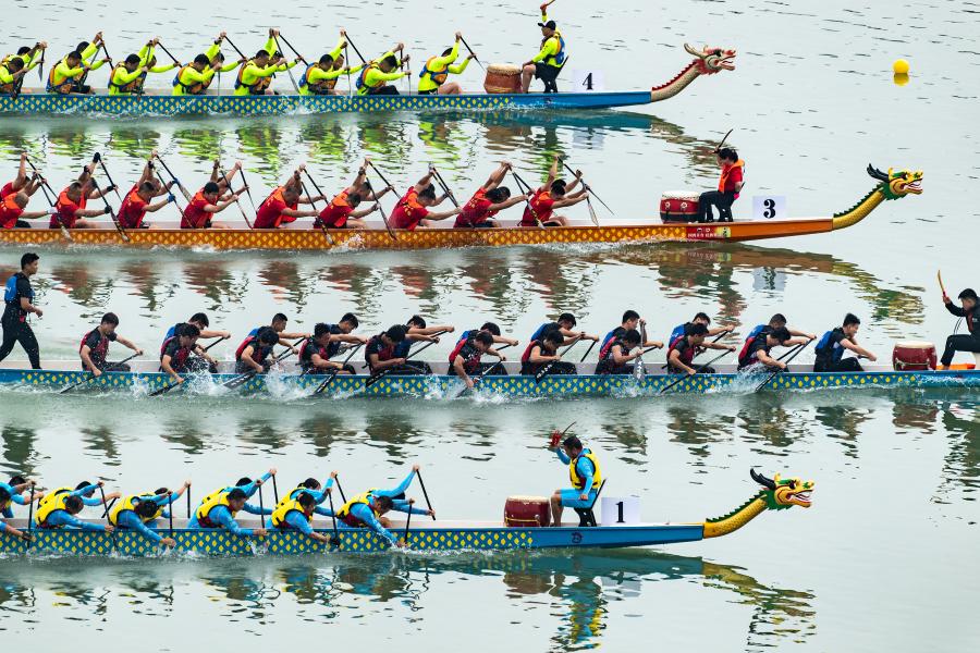 如今,赛龙舟随着时代的发展,也已经形成了完备的竞赛规则和体系,在2010年广州亚运会上被列为正式比赛项目。在2022年杭州亚运会上,我们将再次看到龙舟项目的运动员在洲际综合性运动会上大展身手。