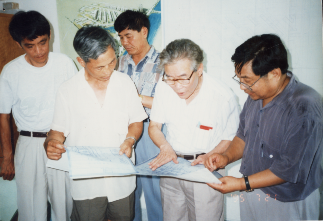彭士禄与科研人员讨论工作