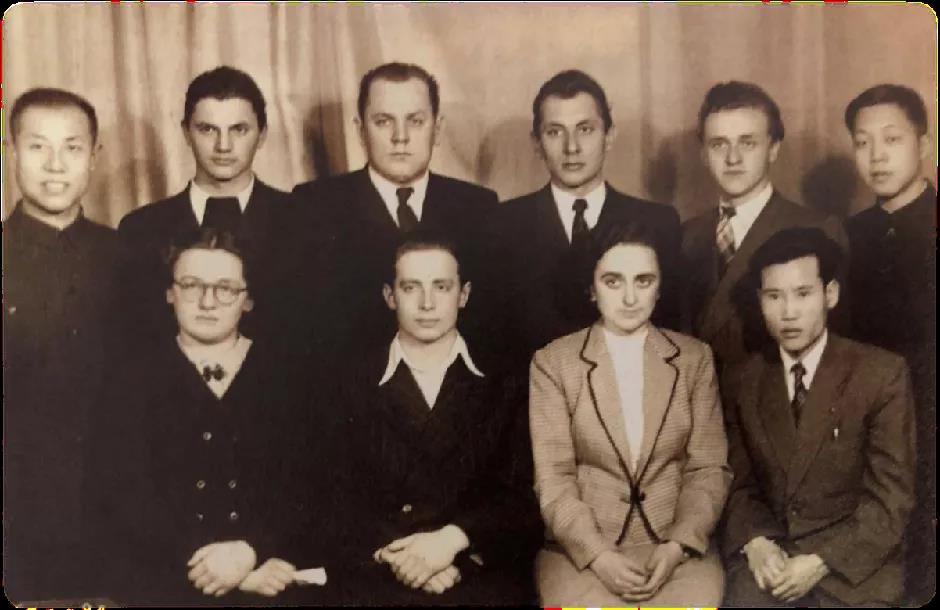1956年,彭士禄(前排右一)在莫斯科动力学院核动力专业进修深造