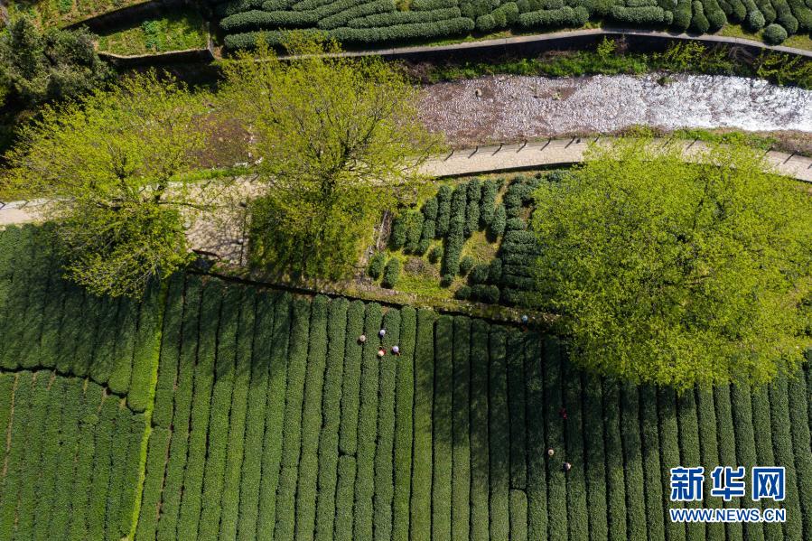 3月23日拍摄的杭州梅家坞村的茶园(无人机照片)。新华社记者 徐昱 摄