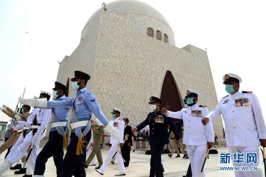 3月23日,巴基斯坦军人在位于卡拉奇的国父真纳墓参加“巴基斯坦日”纪念活动。