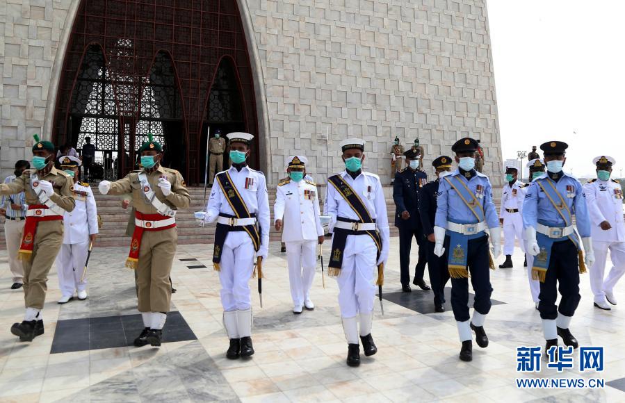 3月23日,巴基斯坦军人在位于卡拉奇的国父真纳墓参加“巴基斯坦日”纪念活动。