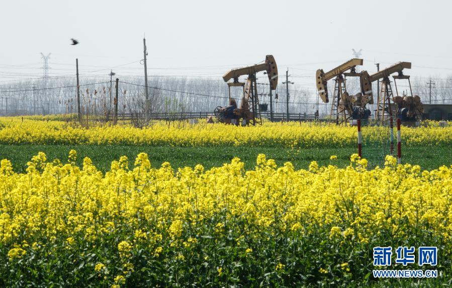 3月23日,在江苏油田陈堡采油班站,采油机组在工作中。