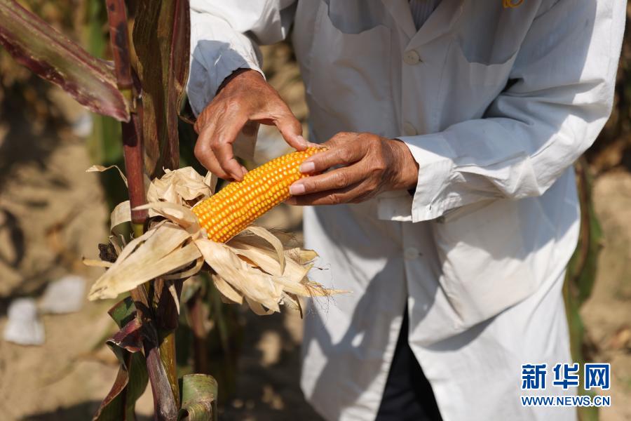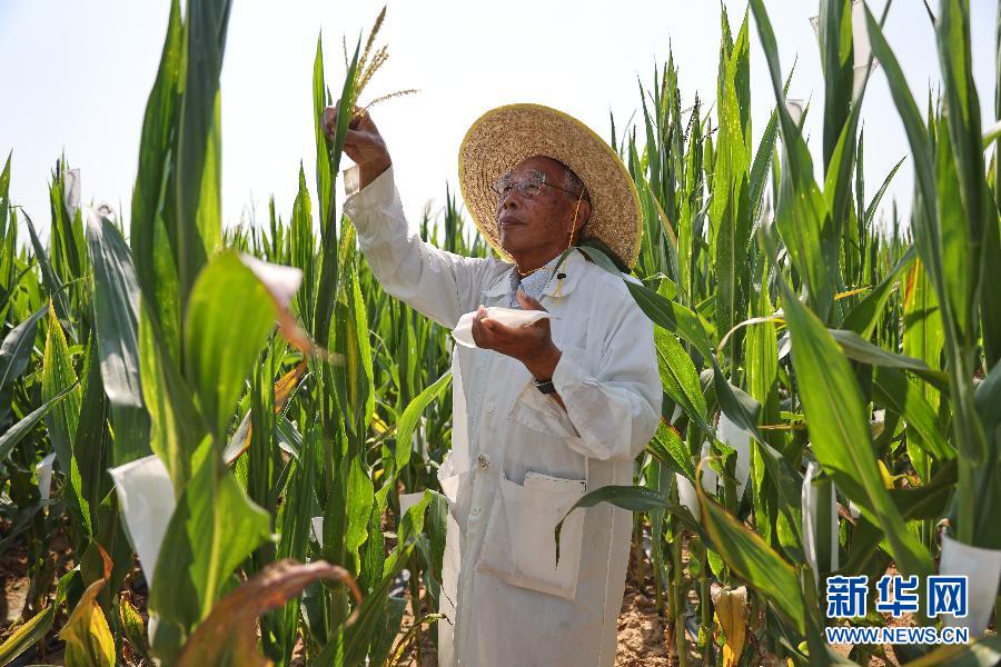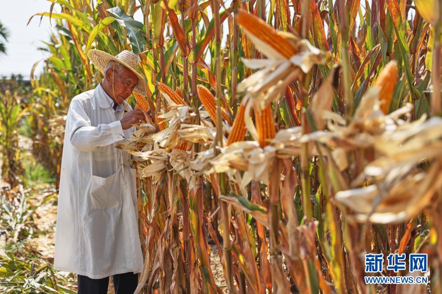 玉米育种专家程相文在三亚南繁育种基地观察玉米生长情况(2月24日摄)。新华社记者 张丽芸 摄
