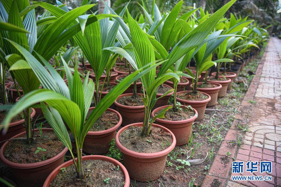 3月9日在海南文昌拍摄的由中国热带农业科学院椰子研究所繁育的矮种椰子种苗。新华社记者 蒲晓旭 摄