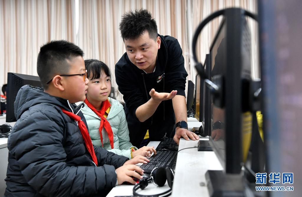 宝鸡市三迪小学的学生下午放学后在老师指导下进行编程练习(3月22日摄)。新华社记者 刘潇 摄