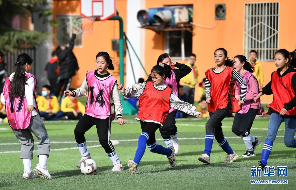 宝鸡市三迪小学的学生下午放学后在学校进行足球训练(3月22日摄)。新华社记者 刘潇 摄