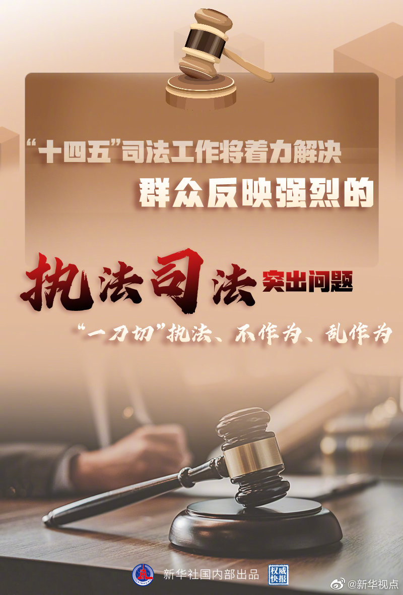 运动式、“一刀切”执法,执法、司法人员不作为、乱作为……这些群众反映强烈的执法司法突出问题,将在“十四五”时期着力解决。记者25日从国新办举行的新闻发布会上获悉,今年司法部将对症下药,重点抓好贯彻新修订的行政处罚法、规范行政自由裁量权、加强行政执法人员教育培训等五方面工作,全面推进严格规范公正文明执法。(记者白阳,海报设计贾伊宁)