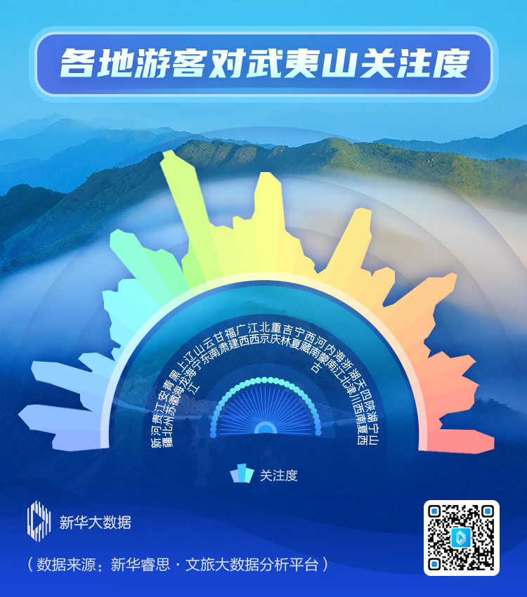 客源多来自于省外,北京、山东、广东、江苏等地游客对武夷山关注度较高。素有碧水丹山、奇秀甲东南之美誉的武夷山令全国各地人民向往。新华睿思文旅大数据平台数据显示,省外客源对武夷山的关注度占比达到88.47%。其中,北京游客对武夷山的关注度最高,占比为8.00%。
