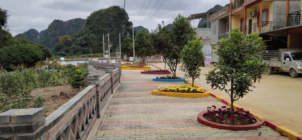 一幢幢依山而建的民居色彩鲜亮,门前休闲步道上的“微花园”花团锦簇,建房用的红砖摇身变成装点村貌的“艺术品”……走进广西龙州县水口镇沿山村陇因屯,一幅宜居宜业的美丽乡村画卷徐徐展开,这幅画卷的“设计师”,正是陇因屯的村民们。