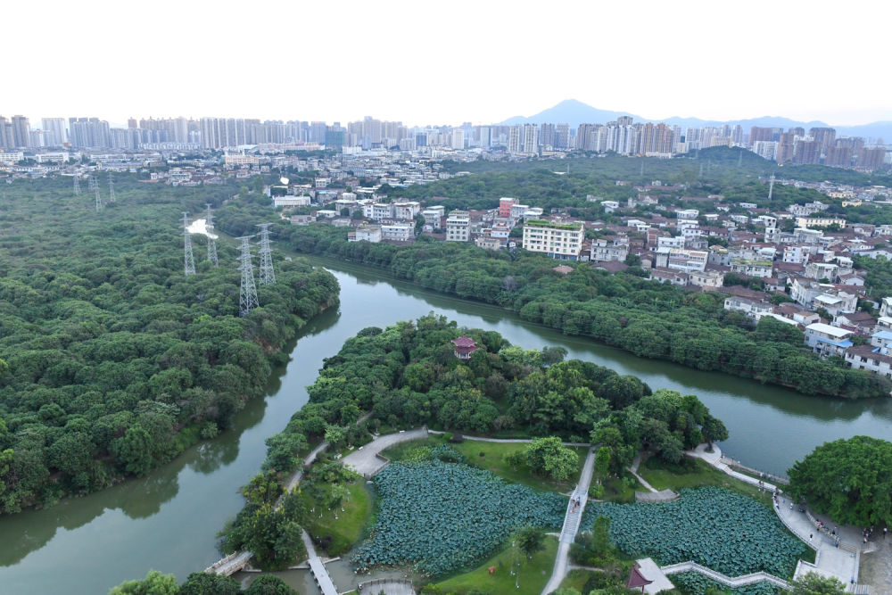 福建莆田木兰溪支流延寿溪中的荔枝林带(无人机照片)