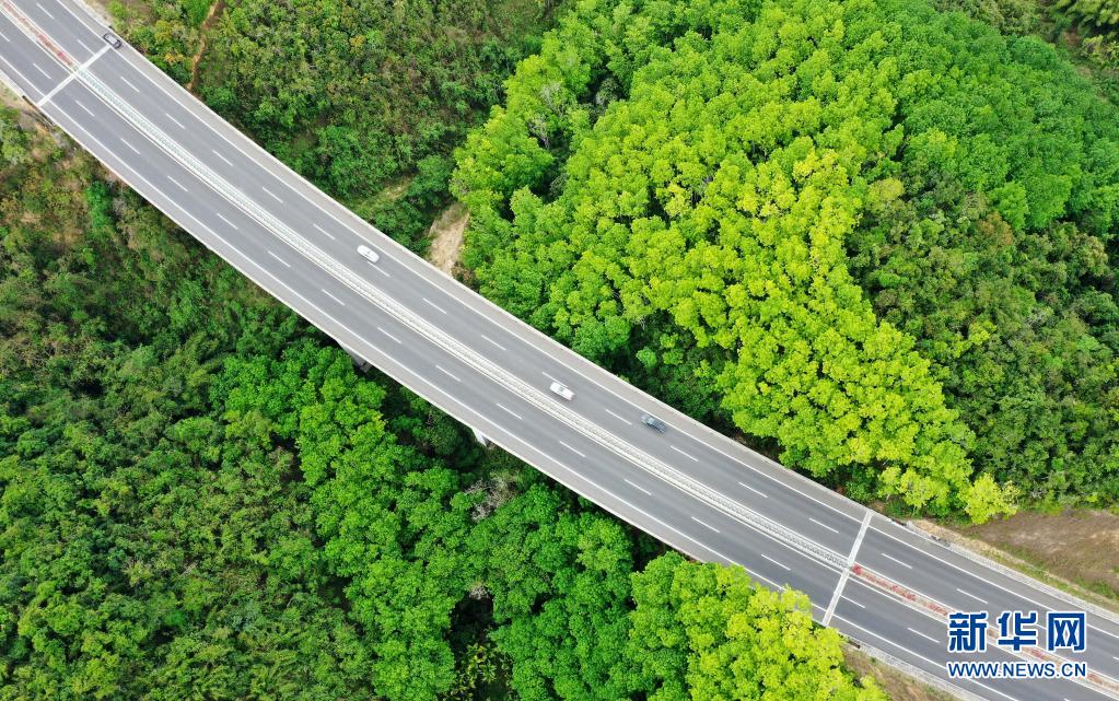 3月26日拍摄的海南山海高速五指山至保亭段(无人机照片)。