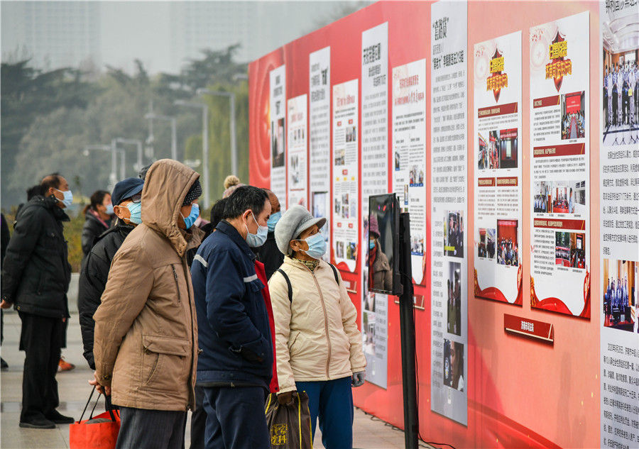 市民在泉城广场参观山东省济南市扫黑除恶专项斗争成果展(2020年12月11日摄)。新华社记者 朱峥 摄