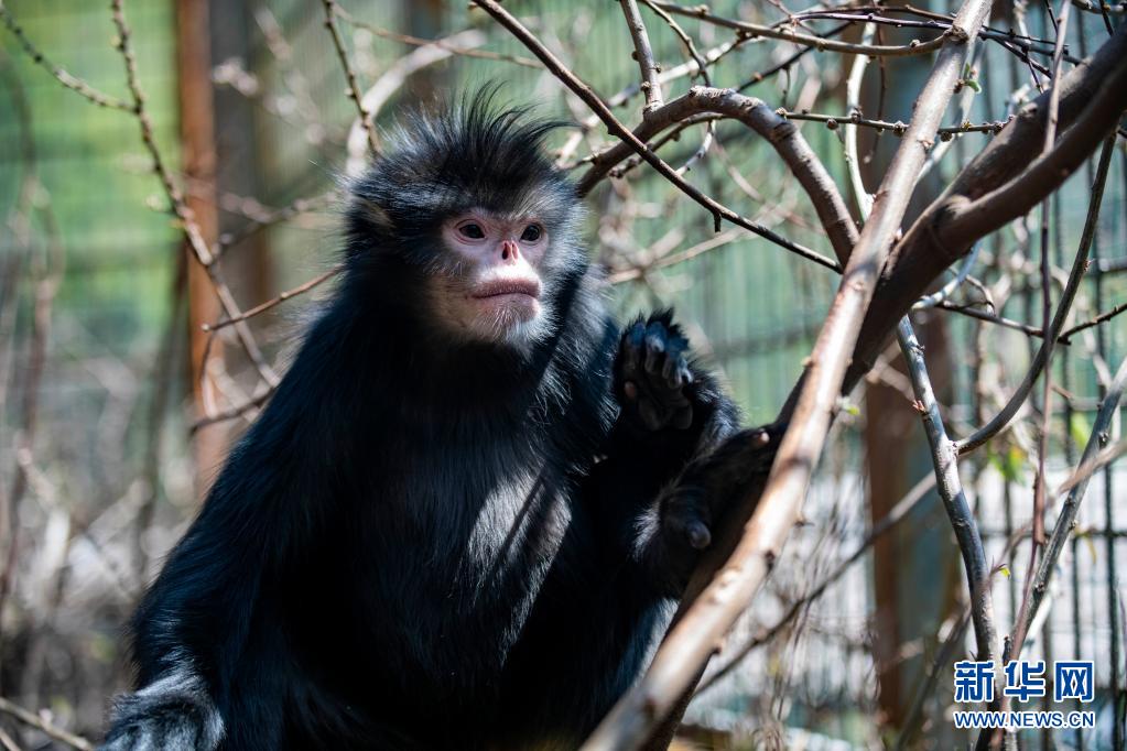被救助收容在姚家坪管护站的一只怒江金丝猴在仿野生环境居所内休息(3月12日摄)。新华社记者 陈欣波 摄