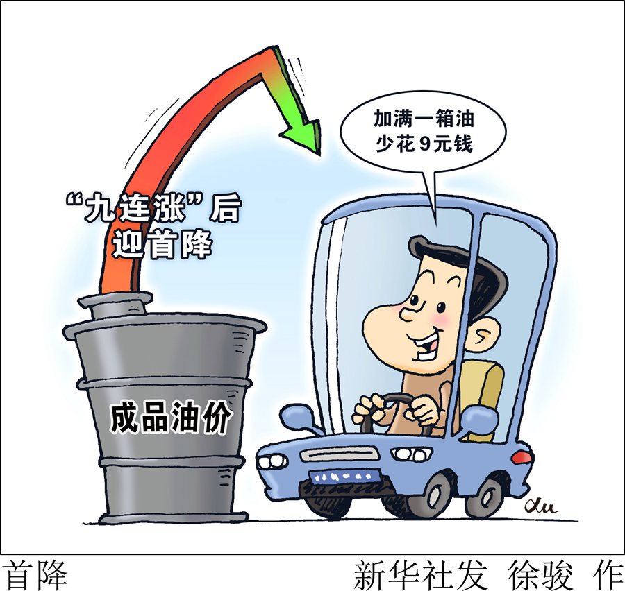 新华社北京3月31日电(记者戴小河、安蓓)在连续九次上涨后,汽油、柴油价格迎来年内首次下调。国家发展改革委3月31日称,根据近期国际市场油价变化情况,按照现行成品油价格形成机制,自31日24时起,国内汽油、柴油价格每吨分别降低225元和220元,折合每升价格下调近2角。