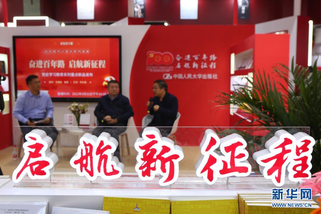 3月31日,参展人员在中国人民大学出版社展位推介新书。