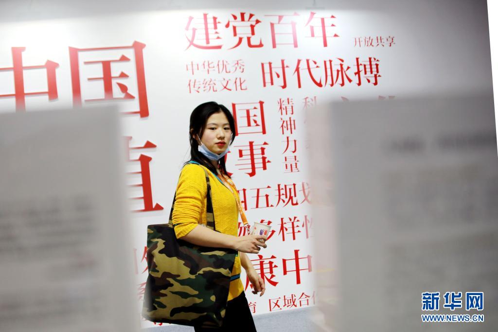 3月31日,一名观众在庆祝建党100周年主题图书展区参观。
