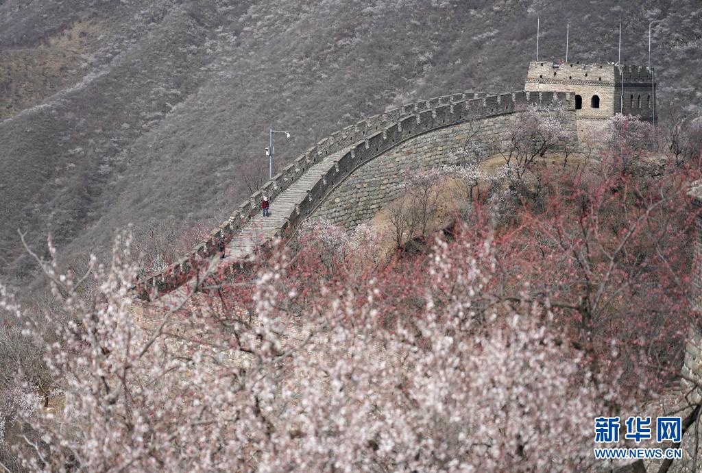 近日,随着气温逐步回升,北京慕田峪长城山花烂漫,春意渐浓。