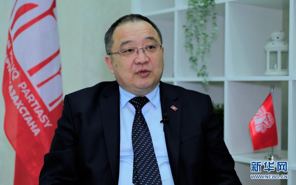 3月20日,哈萨克斯坦人民党中央委员会书记奥尔扎斯·瑟兹德科夫在努尔苏丹接受新华社记者专访。新华社发(奥斯潘诺夫 摄)