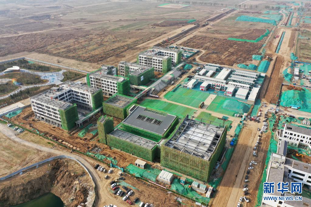 3月31日拍摄的建设中的北京四中雄安校区(无人机照片)。