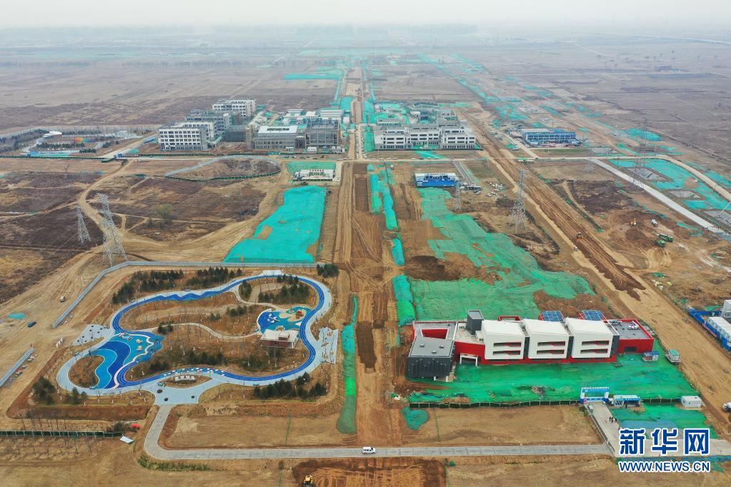 3月18日拍摄的北京市支持雄安新区建设的北海幼儿园雄安园区、史家胡同小学雄安校区和北京四中雄安校区施工现场(无人机照片)。