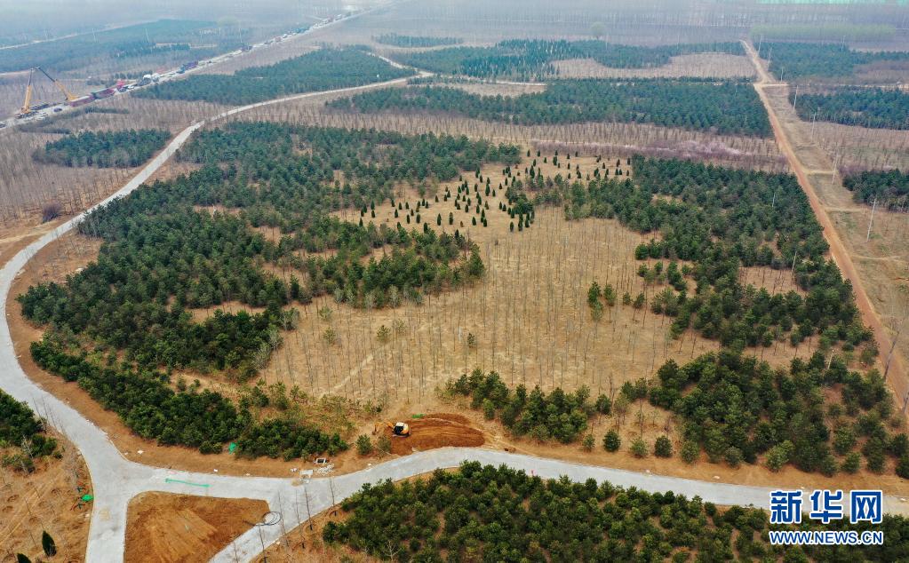 3月19日拍摄的雄安新区“千年秀林”(无人机照片)。