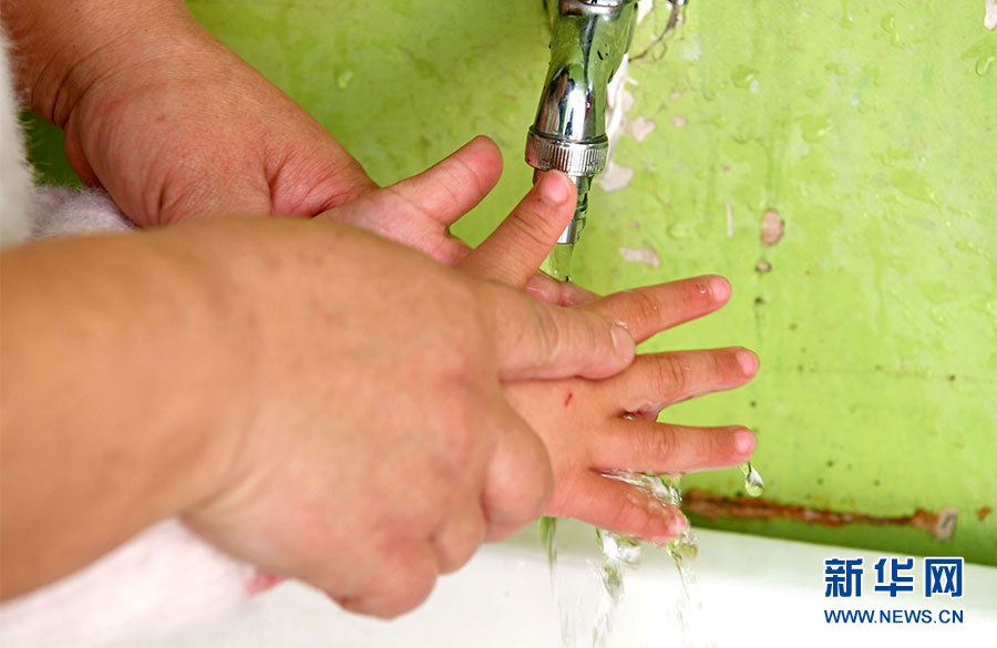 3月30日,安徽省淮南市红雨伞特教中心园长尤德红教自闭症儿童洗手,提升他们的生活自理能力。