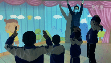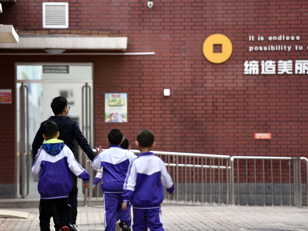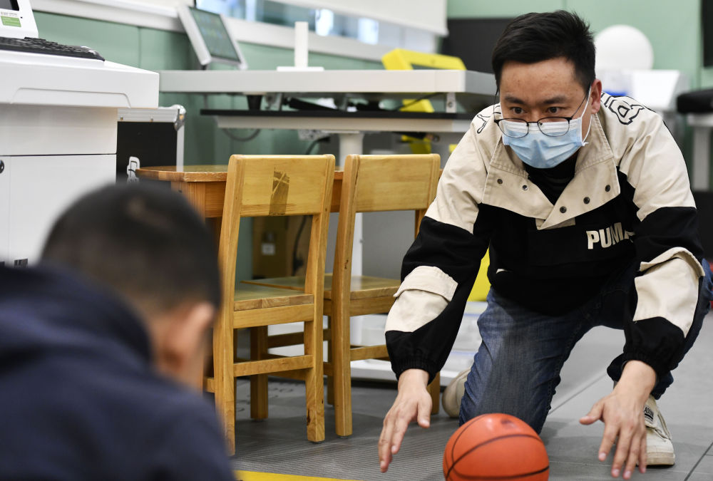 周鹏程和患有自闭症的学生一起走进教学楼。