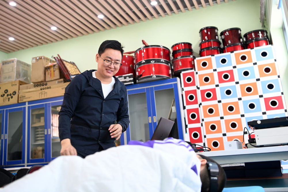 周鹏程给患有自闭症的学生进行脑电波监测。