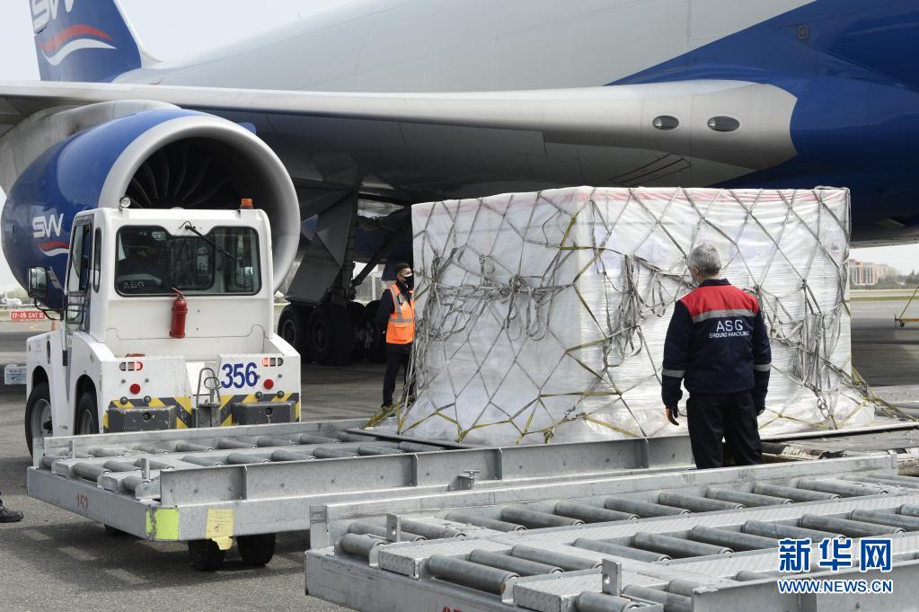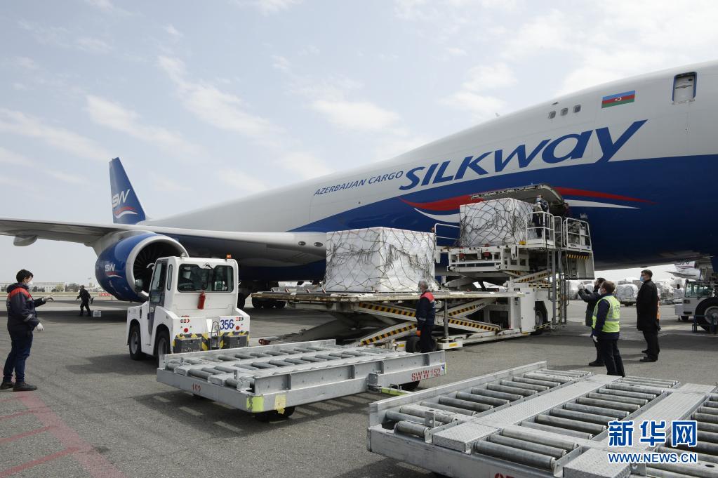 4月1日,搭载中国科兴新冠疫苗的货机抵达阿塞拜疆首都巴库国际机场。新华社发(巴巴耶夫 摄)