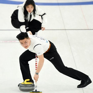 4月1日,运动员在冰壶项目测试活动中。