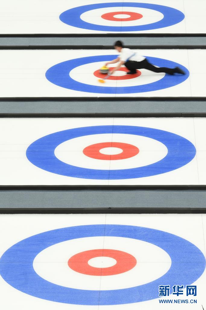 4月1日,运动员在冰壶项目测试活动中。
