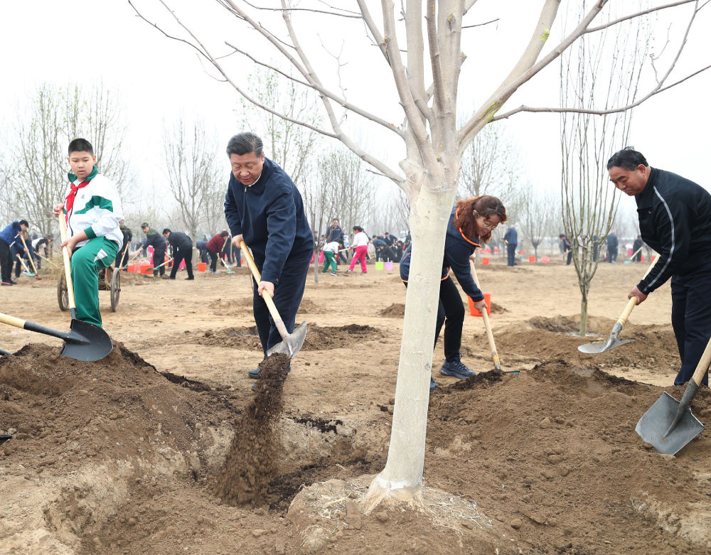 2019年4月8日,党和国家领导人习近平、栗战书、汪洋、王沪宁、赵乐际、韩正、王岐山等来到北京市通州区永顺镇参加首都义务植树活动。