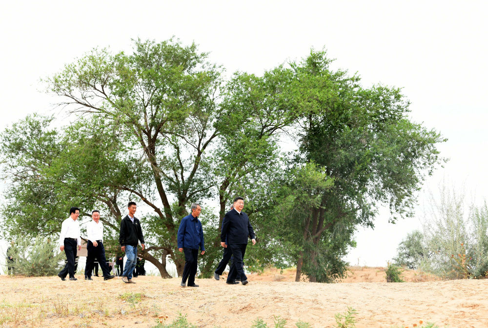 2019年8月21日,习近平来到甘肃武威市古浪县八步沙林场,实地察看当地治沙造林、生态保护等情况。