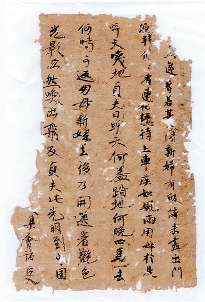 克亚克库都克唐代烽燧遗址出土的文书“韩倗赋”。