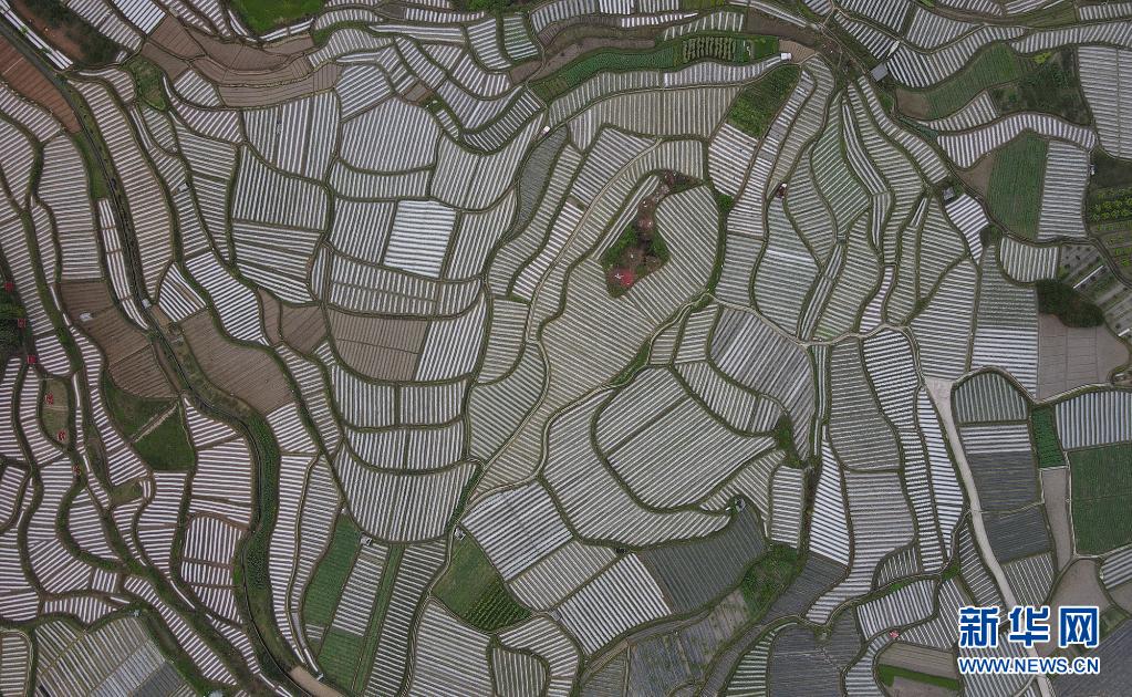 4月5日在贵州省遵义市余庆县白泥镇团结村乌杨大坝现代农业蔬菜种植示范区拍摄的田园风光(无人机照片)。